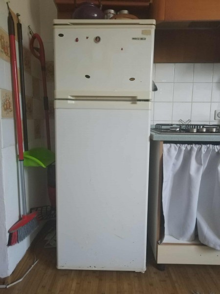 Hladilnik dela, vendar ne tesni najbolje. Zamrzovalnik dela ok. Nesti ga je treba iz drugega nadstropja po zunanjem stopnišču bloka.