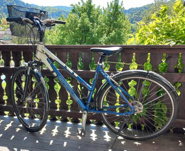 Podarim žensko treking kolo. Potrebuje servis prestav in zavor. Zadaj na eni strani zavora pritiska na kolo.