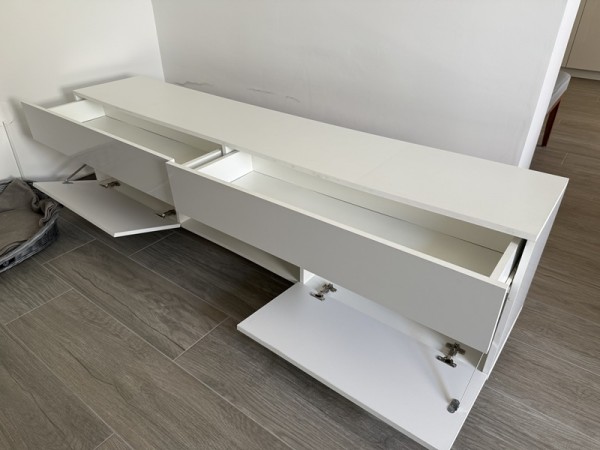 Podarimo lepo ohranjeno TV omarico dolžine 180cm, bele barve z predalnikom in omarico.
