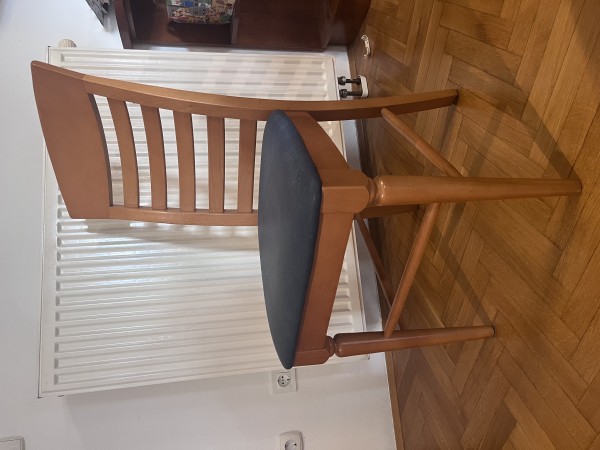 Podarim 6 jedilniških stolov iz bukovega lesa z modrim oblazinjenjem.