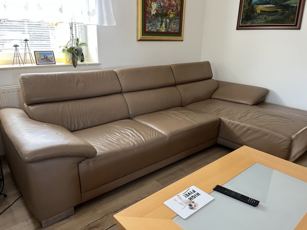 Sedežna garnitura je dobro ohranjena; zgolj na enem od sedalnih delov usnje ni več kot novo.